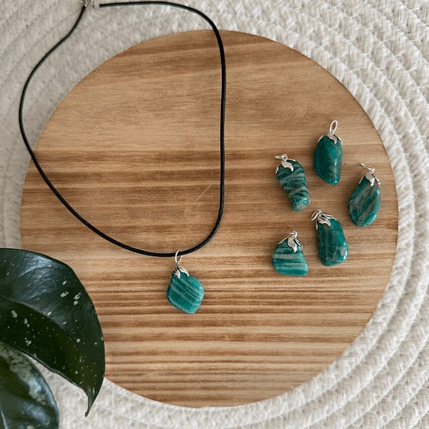 Amazoniet staat al eeuwenlang bekend als een rustgevende en evenwichtige edelsteen. Deze zachtgroene tot turquoise steen straalt harmonie uit, bevordert open communicatie en helpt je trouw te blijven aan je eigen waarheid. Een hanger die je herinnert aan kalmte, balans en innerlijke helderheid in je dagelijks leven.