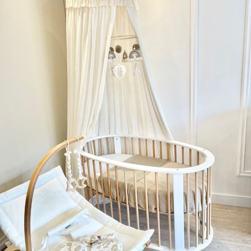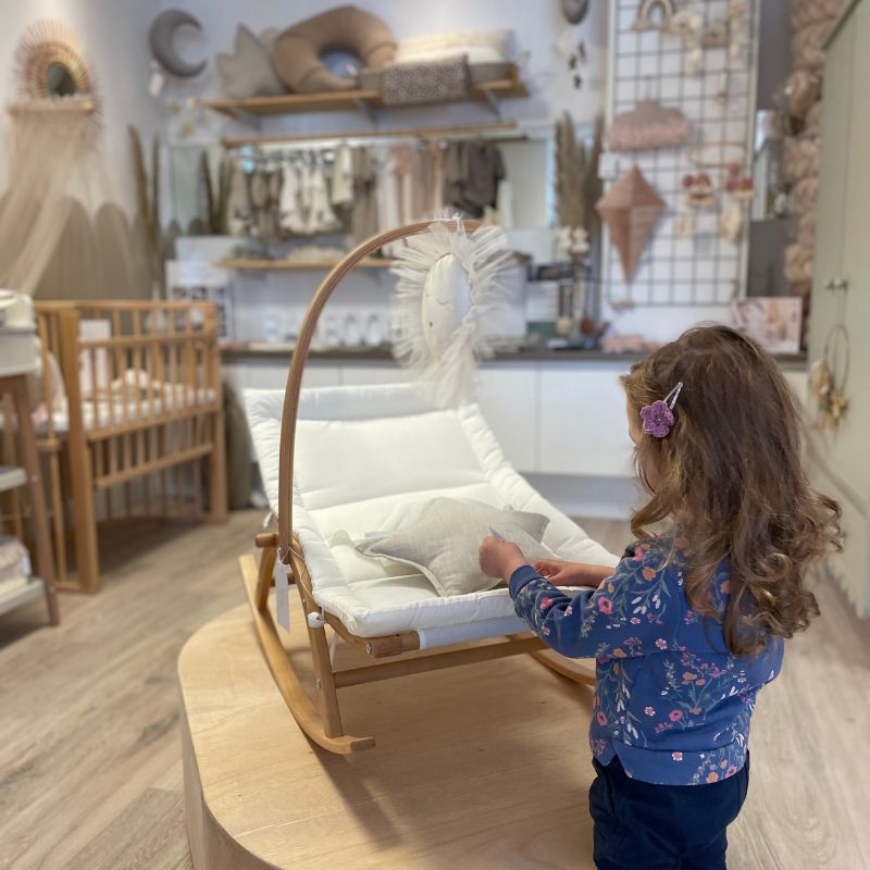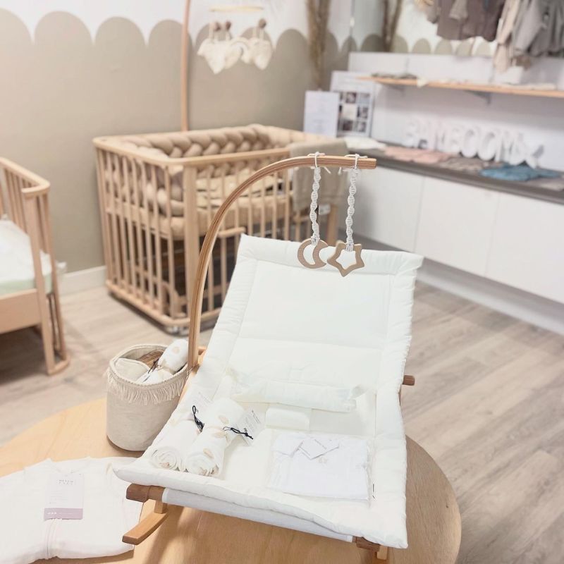 De baby bouncer is uniek in Nederland & België door het toegevoegde design van de baby mobiel stang. Je baby zal zich hierdoor nooit vervelen en constant kunnen kijken naar de mooie hangertjes. Er is een ster accessoire aan toegevoegd die je er inclusief bij krijgt. De wipstoel met baby mobiel stang is ideaal, je kunt er elk baby mobieltje aan hangen die aan de stang past. Er zijn twee gaatjes in de baby mobiel stang aanwezig waarbij we gepaste handgemaakte macramé hangertjes in ster en maan vorm aanbieden. Dit maakt van de baby bouncer een échte blikvanger in elke woonkamer.