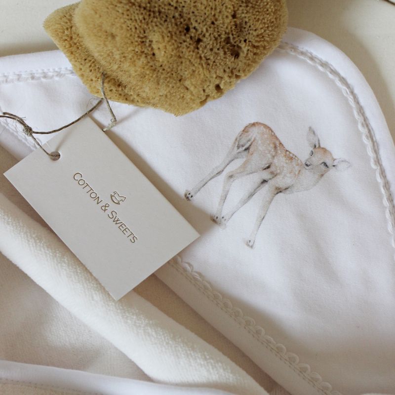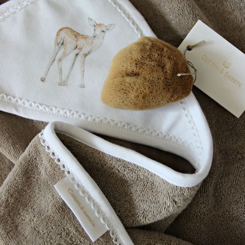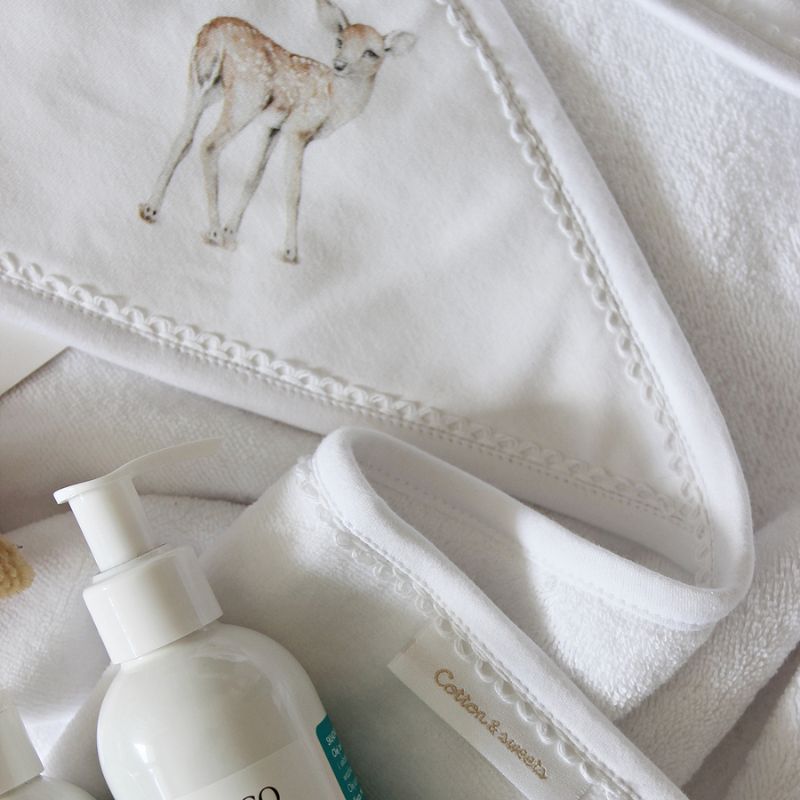 [vc_row][vc_column][vc_column_text css=””]De badcape hertje van Cotton & Sweets is een onmisbare musthave voor de babyuitzet. Na een kalmerend badje zorg is je baby veilig en comfortabel ingepakt. De katoenen handdoek met kap is gemaakt van dubbelzijdige katoenen badstof dat heerlijk aanvoelt voor de gevoelige huid van een newborn baby. Het hoogwaardige materiaal garandeert antibacteriële en anti-allergische eigenschappen.