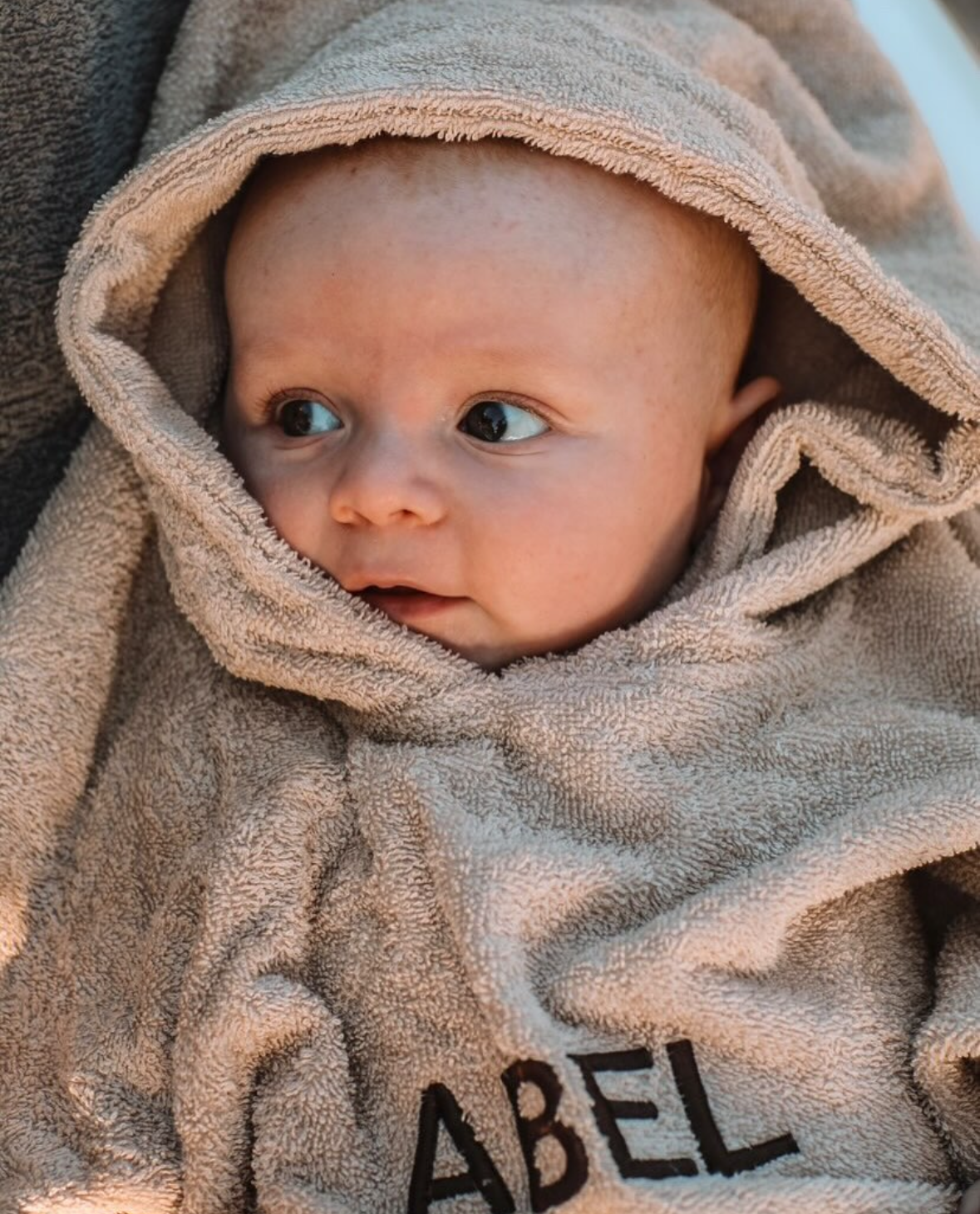 Lekker knuffelen naar een warm bad kan het beste met onze poncho van badstof. De weving van de stof is kort en vast waardoor de badstof erg zacht aanvoelt en goed vocht absorbeert. Omdat wij willen dat je baby opgroeit in een veilige omgeving worden tijdens de productie alleen natuurlijke materialen gebruikt en geen giftige stoffen.