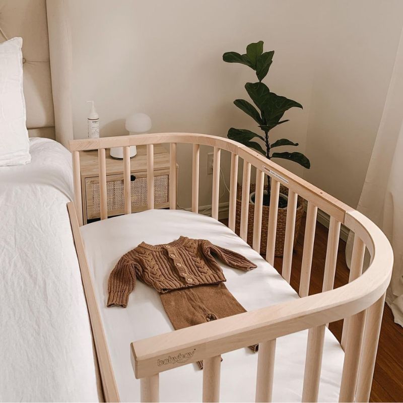 De co-sleeper wieg met vlechtbumper als pronkstuk in de babykamer