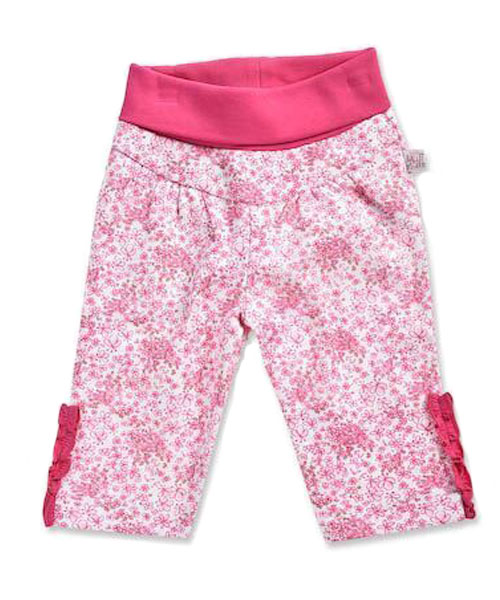 Aan beide broekspijpen zijn leuke hard roze ruches bevestigd.