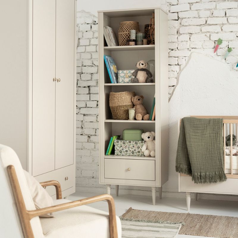 Luxe babykamermeubels voor een super mooie prijs. Op zoek naar een boekenkast petite voor in de babykamer? De elegante kast van de Petite babymeubels collectie is een echte eyecatcher door de beige kleur en de vintage stijl dat terug te zien is in het deurbeslag en pootjes. Het ontwerp van deze lijn babykamer meubeltjes van Pinio geeft het baby interieur een unieke charme.