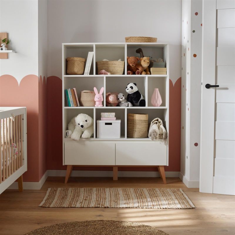 Op zoek naar een deco kast die functioneel, degelijk en prachtig is vormgegeven? De deco kinderkast swing is een echte eyecatcher door de witte kleur, het tijdloze design en de toevoeging van het beukenhout. De boeken- en decokast biedt erg veel opbergruimte en is een echte blikvanger in de kinderkamer.