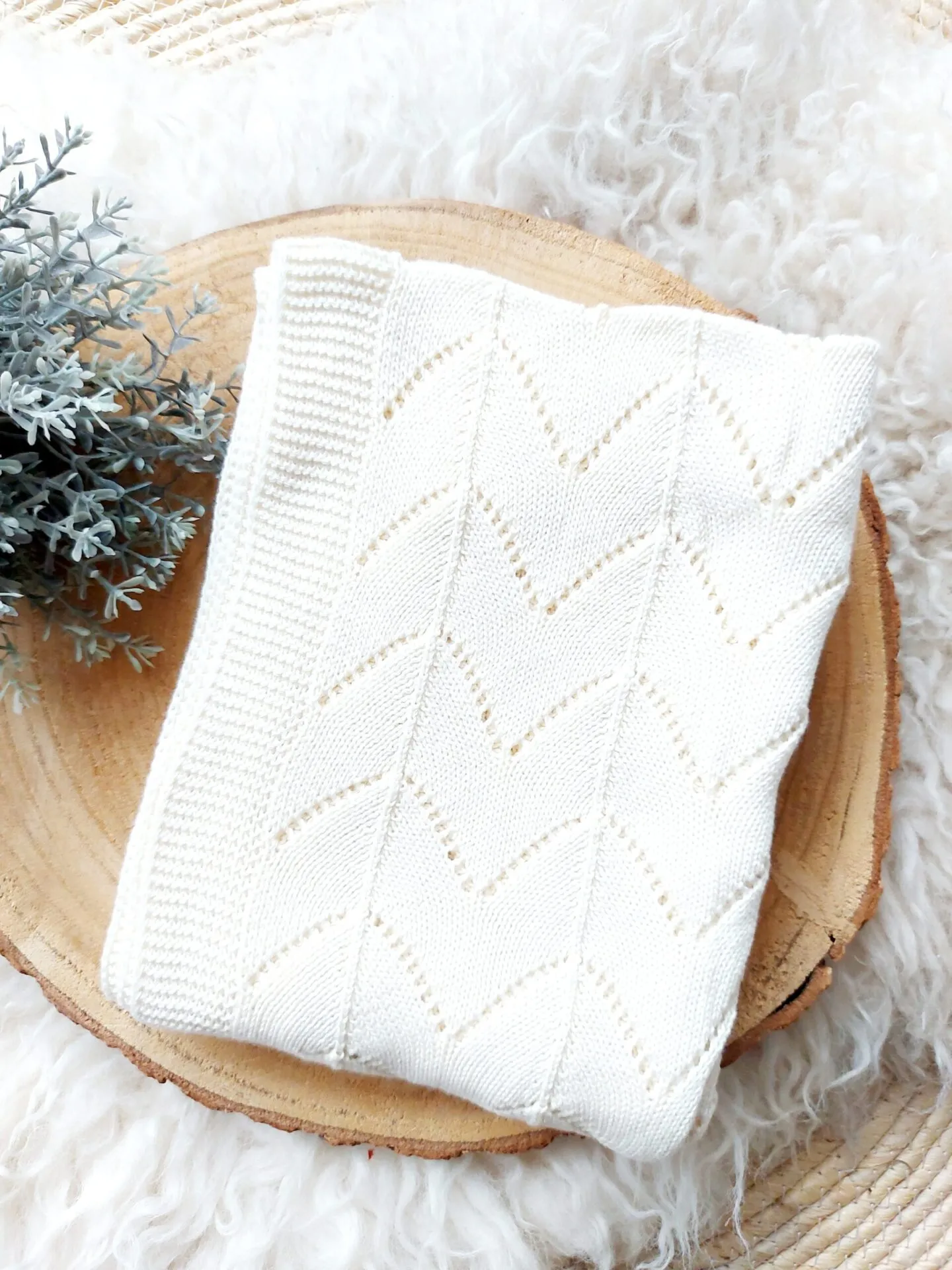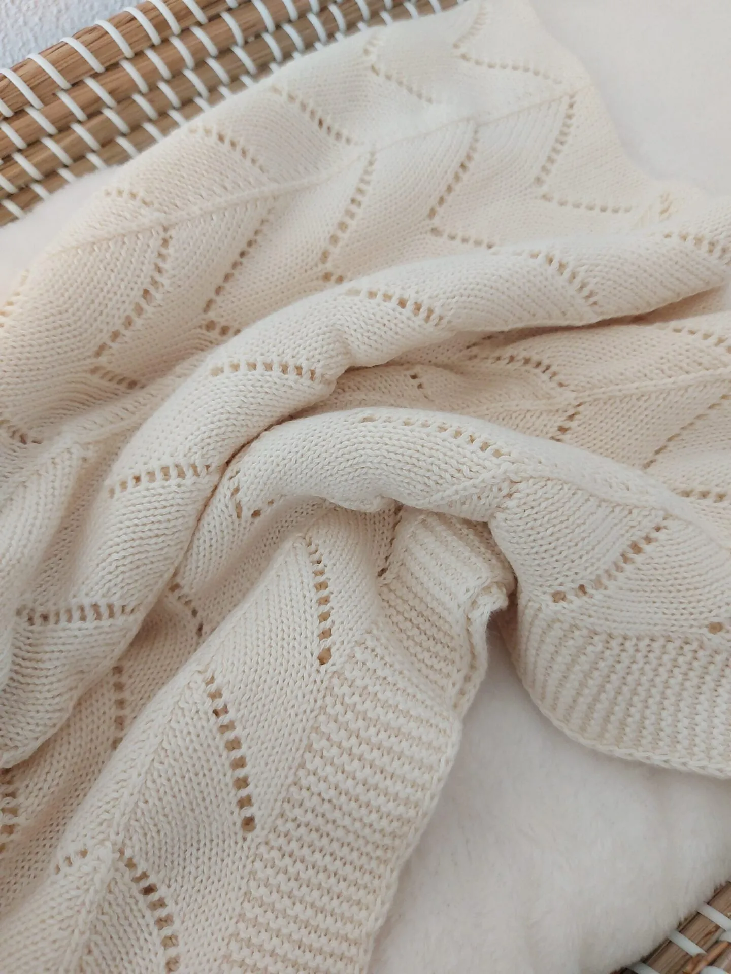 Prachtig wiegdekentje met een golvend gaatjespatroon. Ook handig voor in de maxicosi, onderweg of in de box. Luchtig katoenen dekentje. Perfect voor het voorjaar en de zomer.