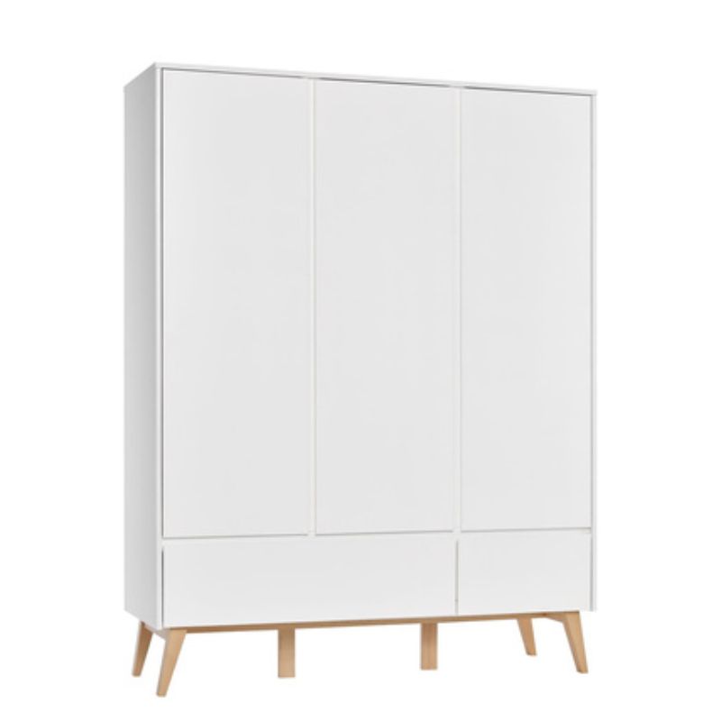 Op zoek naar een kledingkastje dat met veel opbergruimte is vormgegeven? De witte elegante 3-deurs kledingkast van de Swing kinderkamer collectie is een echte eyecatcher door het tijdloze design en de toevoeging van het beukenhout in de pootjes. Het ontwerp van deze lijn babykamer meubeltjes van Pinio biedt jouw baby interieur een unieke charme.
