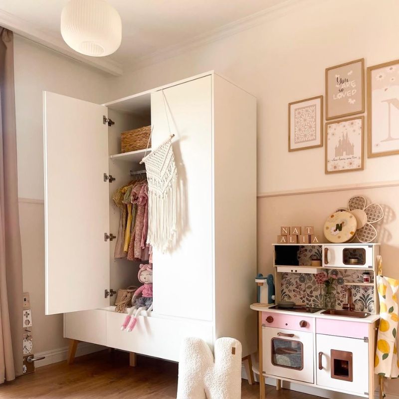 Je kunt de opbergkast super mooi stijlen in combinatie met een beukenhouten wiegje of ledikantje van onze collectie babybedjes. Samen met de andere unieke design meubeltjes van Pinio. Zo kun je de kinderkamerkast bijvoorbeeld combineren met de commode of het boeken- en decokastje van de Swing collectie. Je creëert dan een chicque babykamertje en het past perfect bij elkaar vanwege dezelfde materialenmix. De kledingkast is perfect voor onze babykleding in op te hangen, maar kan ook worden gebruikt voor bijvoorbeeld beddengoed op te bergen.