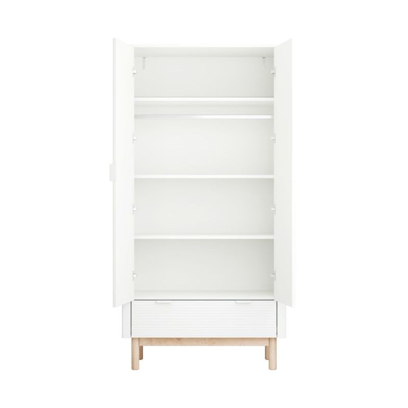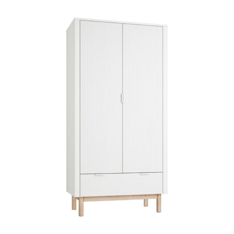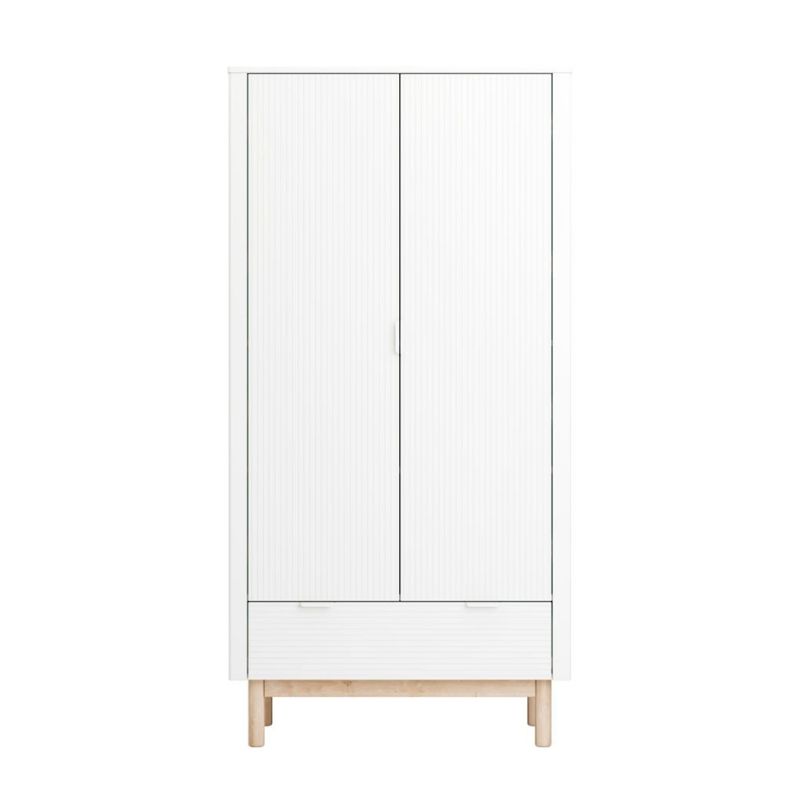 De kledingkast wit zegt het al, chic design in babykamermeubels. Op zoek naar een kledingkastje die functioneel, degelijk en prachtig is vormgegeven? De elegante kast van de Miloo kinderkamer collectie is een echte eyecatcher door de kleur, het subtiele streepjes patroon en de toevoeging van het beukenhout. Het ontwerp van deze lijn babykamer meubeltjes van Pinio geeft het baby interieur een unieke charme.