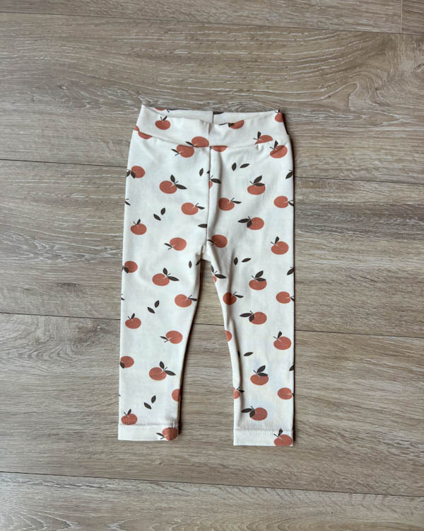 Handgemaakte legging in de stof appels. De legging is gemaakt van een zachte en rekbare katoen. Dit zorgt ervoor dat de kleding gemakkelijk aangaat en heerlijk zit. De stof heeft een print met leuke appel print.