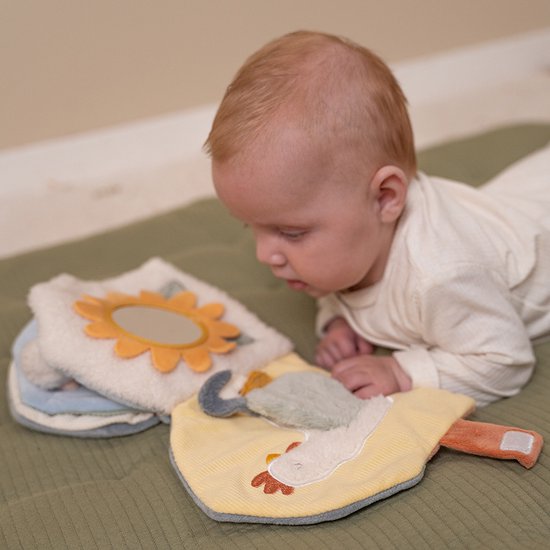 Baby’s vervelen zich geen moment met dit kleurrijke activiteitenboekje van Little Farm in de vorm van een schuur. Er valt veel te beleven met de verschillende materialen en activiteiten, zoals een spiegeltje, rammelaar en verstopte speeltjes. Ook heeft het zachte boekje verschillende labels om aan te voelen. Dit prikkelt niet alleen de zintuigen, maar is ook goed voor de ontwikkeling van de hand-oogcoördinatie.