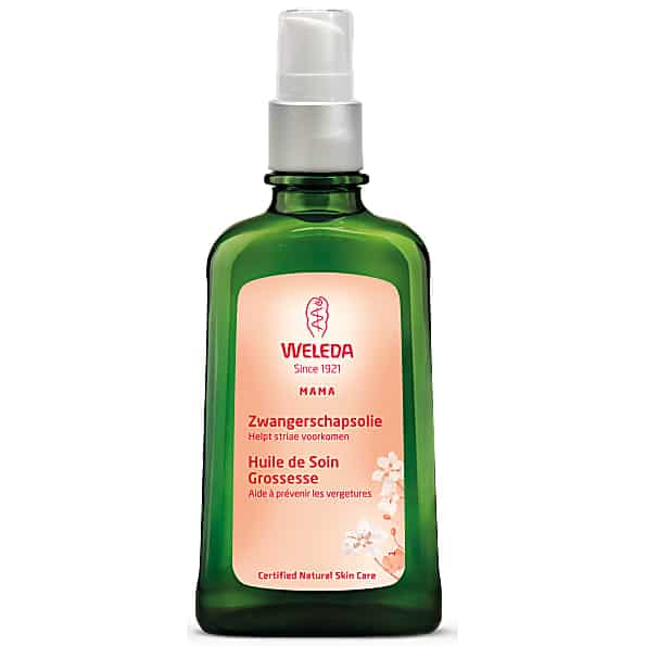 De 100% natuurlijke Zwangerschapsolie van Weleda bevat een combinatie van zoete amandelolie, tarwekiemolie en biologische jojoba-olie. Dit voedt de huid intensief, reguleert het vochtgehalte en ondersteunt herstellend vermogen van de huid. Arnica-extract bevordert de doorbloeding van de huid en verbetert de elasticiteit van het huidweefsel waardoor haar spankracht verbetert. Pure etherische oliën van lavendel, wilde roos, en sinaasappelbloesem zorgen voor een subtiele geur. Deze is afgestemd op het toegenomen reukvermogen van de zwangere vrouw.