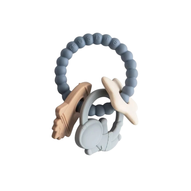 Deze bijtring is ontworpen met textuur vormen rondom de ring, zoals een astronaut, ster en een raket. Deze stimuleren de zintuiglijke ontwikkeling van je baby. Perfect voor de natuurlijke drang van je baby om te kauwen.