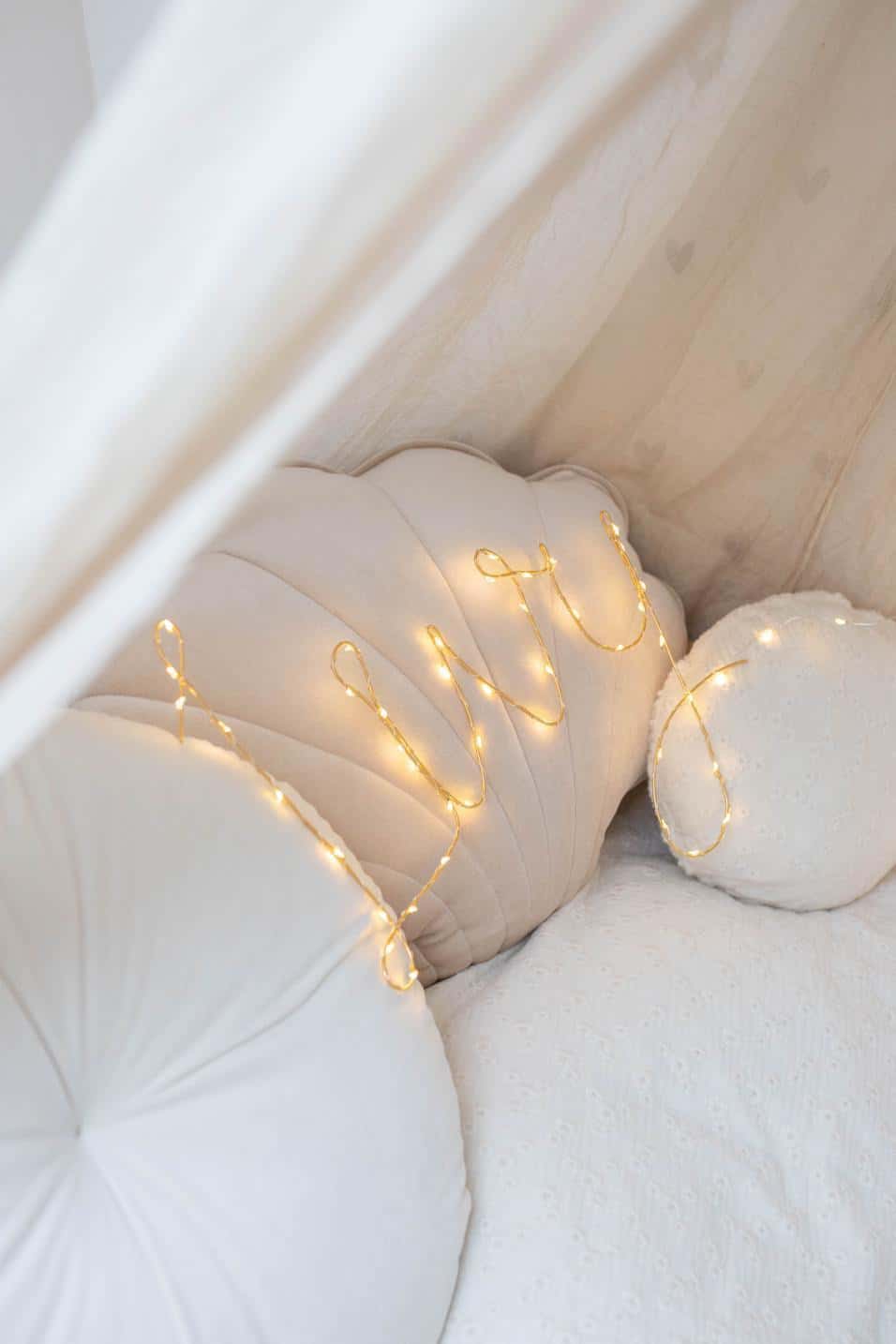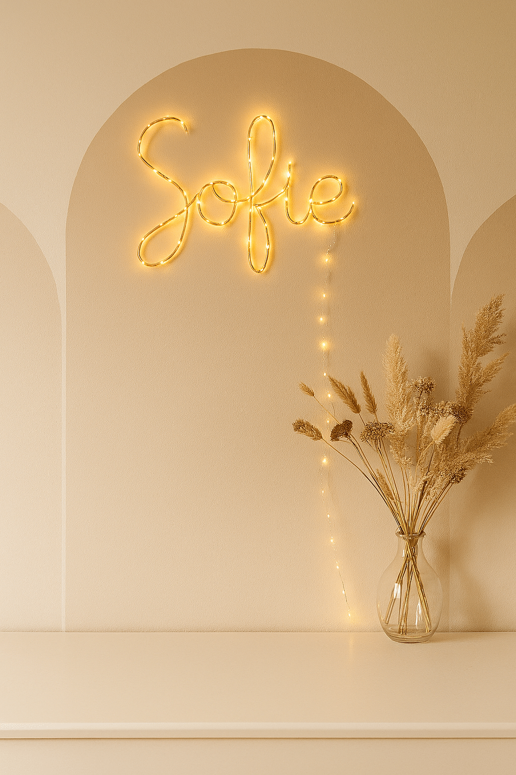 Hoe gaaf is het om een lampje te hebben in de letters van je naam? Dit naamlampje wordt handgemaakt en de lampjes werken op batterijen. De lampjes geven zacht licht. Een absolute musthave in elke kinderkamer.
