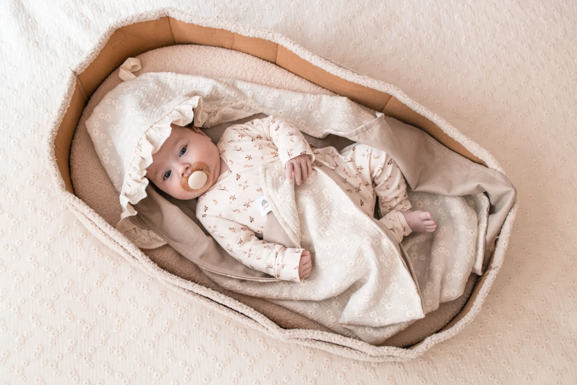 Extra: je kunt de omslagdoek ook bestellen voor in de maxi cosi, dan zit er een opening tussen de benen.