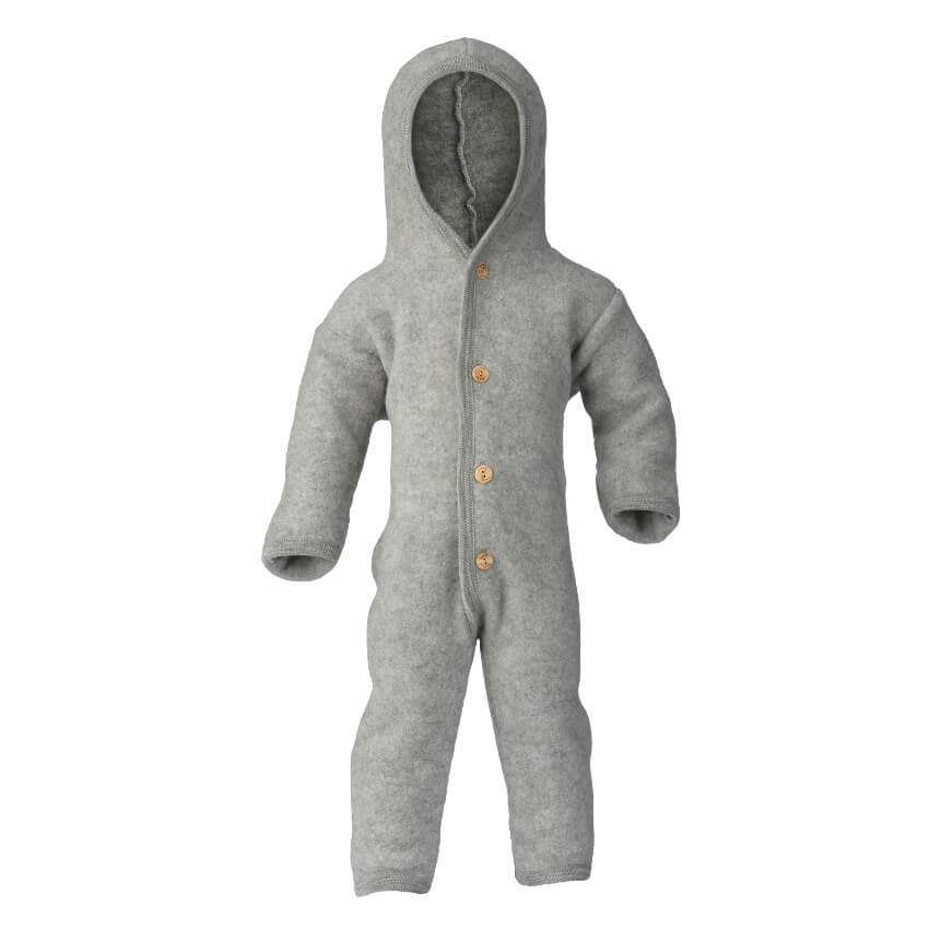 De overall wolfleece grijs, gemaakt van 100% biologische Merino scheerwol.