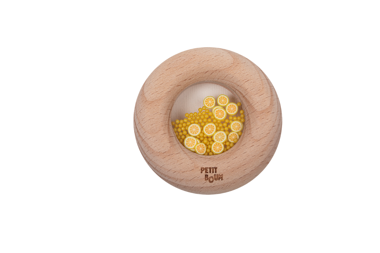 Deze sensorische donut is een houten rammelaar en een bijtring in één. Ideaal zintuiglijk speelgoed om door jong en oud te verkennen.