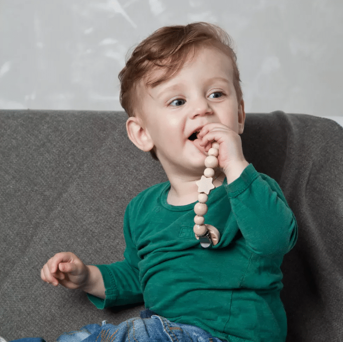 - voor het bevestigen van fopspenen, bijtringen, bijtwortels etc
