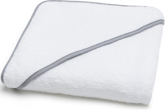 Torres Novas 1845 Poncho / Badcape Mira, Wit met zilvergrijze bies. Mooie badcape vervaardigd van 100% biologisch, Portugees katoen. Wikkel je baby in met deze absorberende poncho na het badderen, douchen of zwemmen. Door de capuchon blijft ook het hoofdje van je kindje heerlijk warm. De badstof wikkelhanddoek is speciaal ontworpen voor de allerkleinsten en geschikt voor baby’s en peuters tot ongeveer 3 jaar. Met een baby handdoek van Torres Novas, gemaakt van 100% biologisch katoen, is duurzaamheid en comfort gecombineerd, waardoor je een echt kwaliteitsproduct in huis haalt.